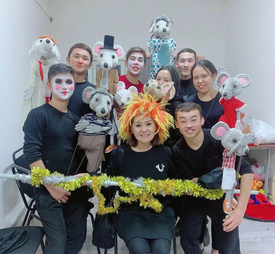 Бубусара Бейшеналиева атындагы КММИУнун 3 - курсунун куурчак театры адистигинин студенттеринен куралган:
