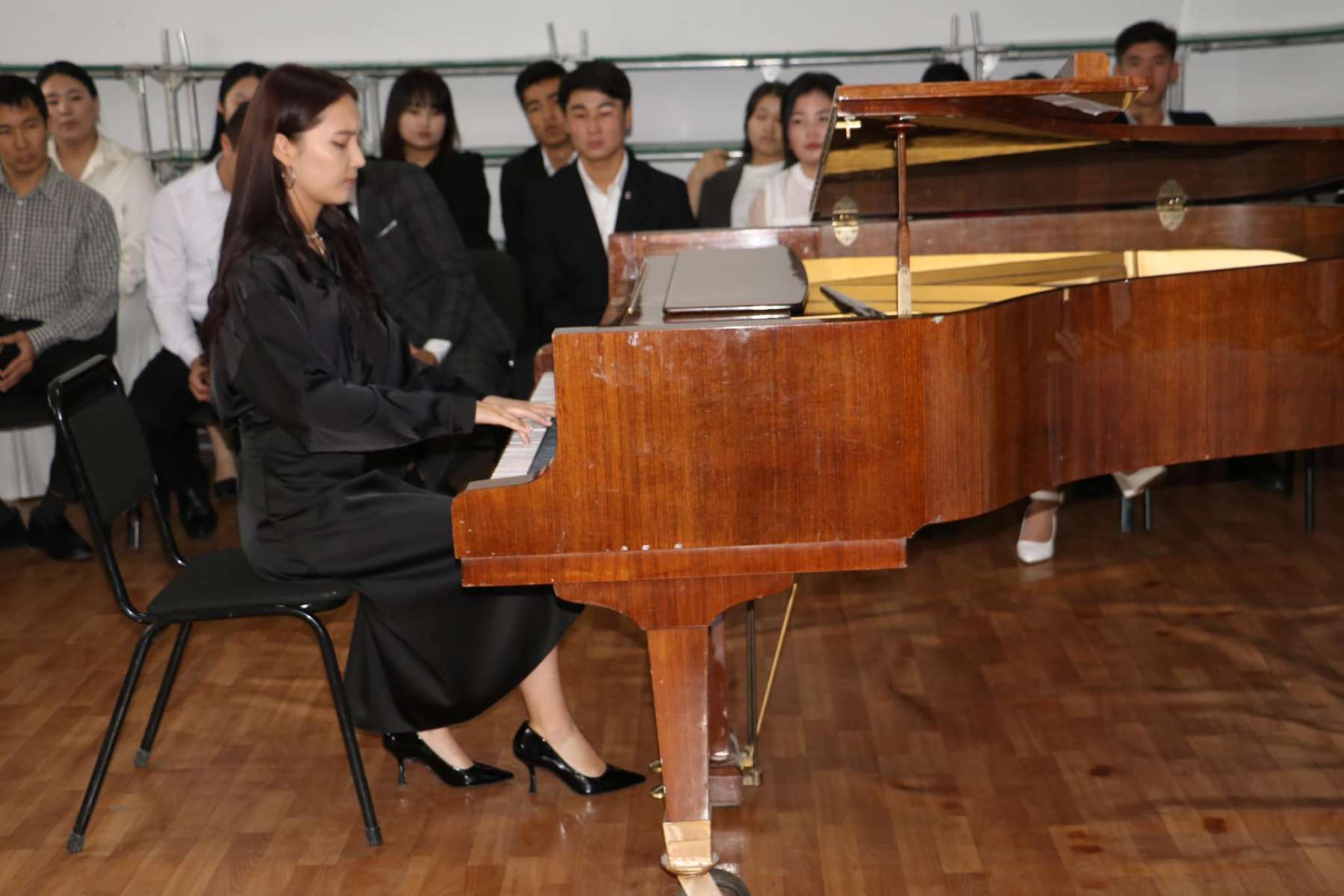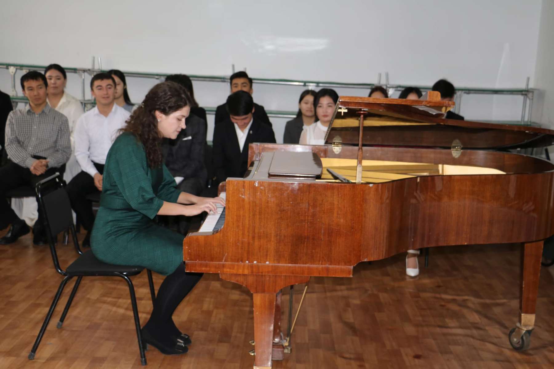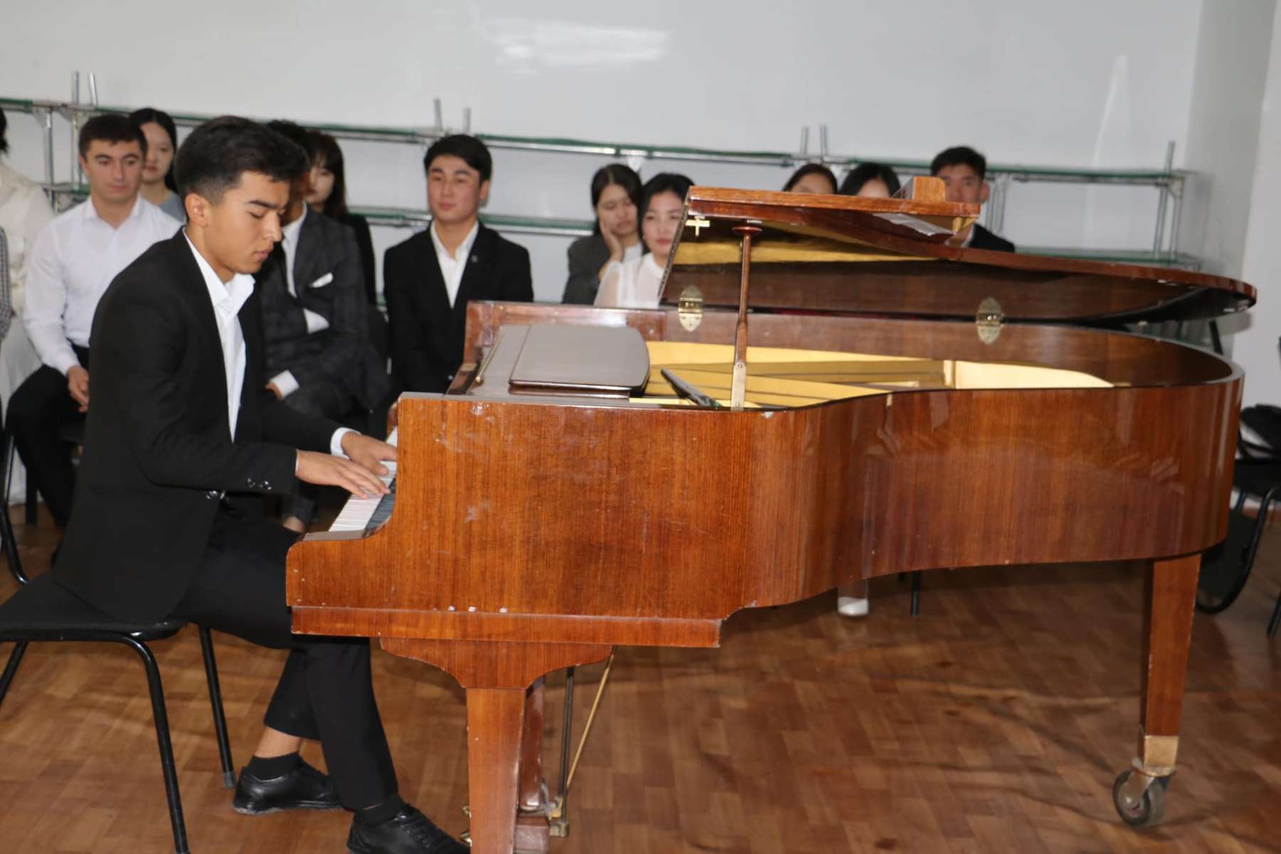 Анда 24 студент Молдобасановдун “Фортепиано үчүн 24 пьеса” китебиндеги чыгармаларын бирден аткарышты.