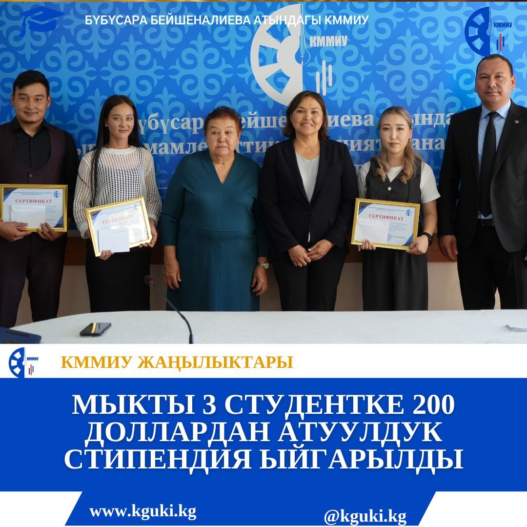 МЫКТЫ 3 СТУДЕНТКЕ 200 ДОЛЛАРДАН АТУУЛДУК СТИПЕНДИЯ ЫЙГАРЫЛДЫ