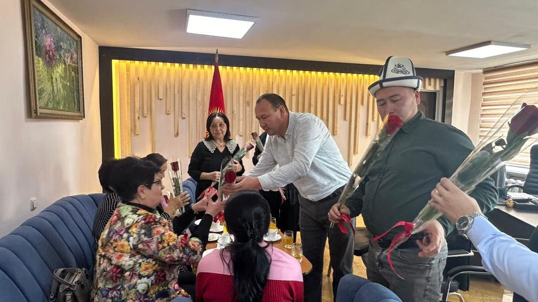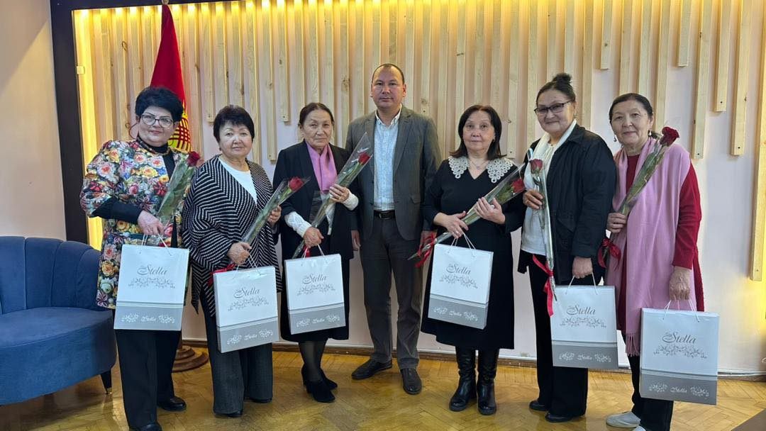 КММИУнун ректору, доцент Т.Р.Колдошов окуу жайдын ардагер айымдарын 8-Март аялдардын эл аралык майрамы менен куттуктап, белек тапшырды.