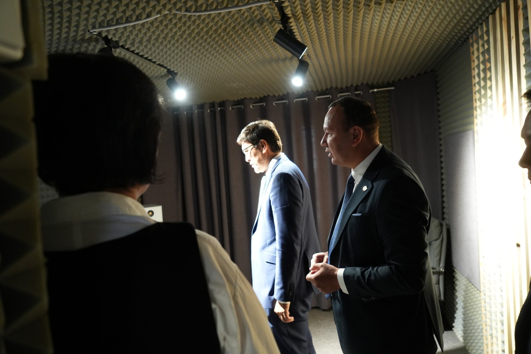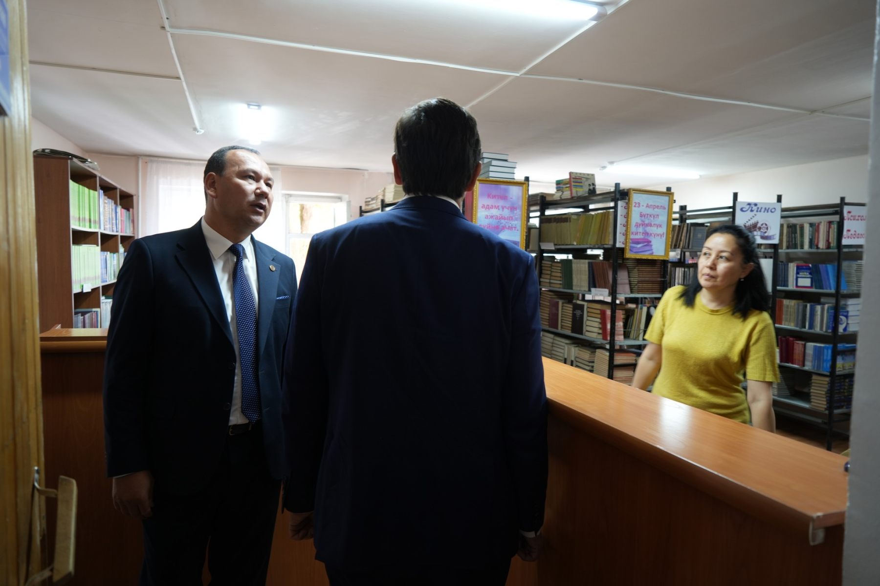 Жолугушуунун жүрүшүндө окуу жайдын ректору Түмөнбай Колдошов университеттин базасы менен тааныштырды.