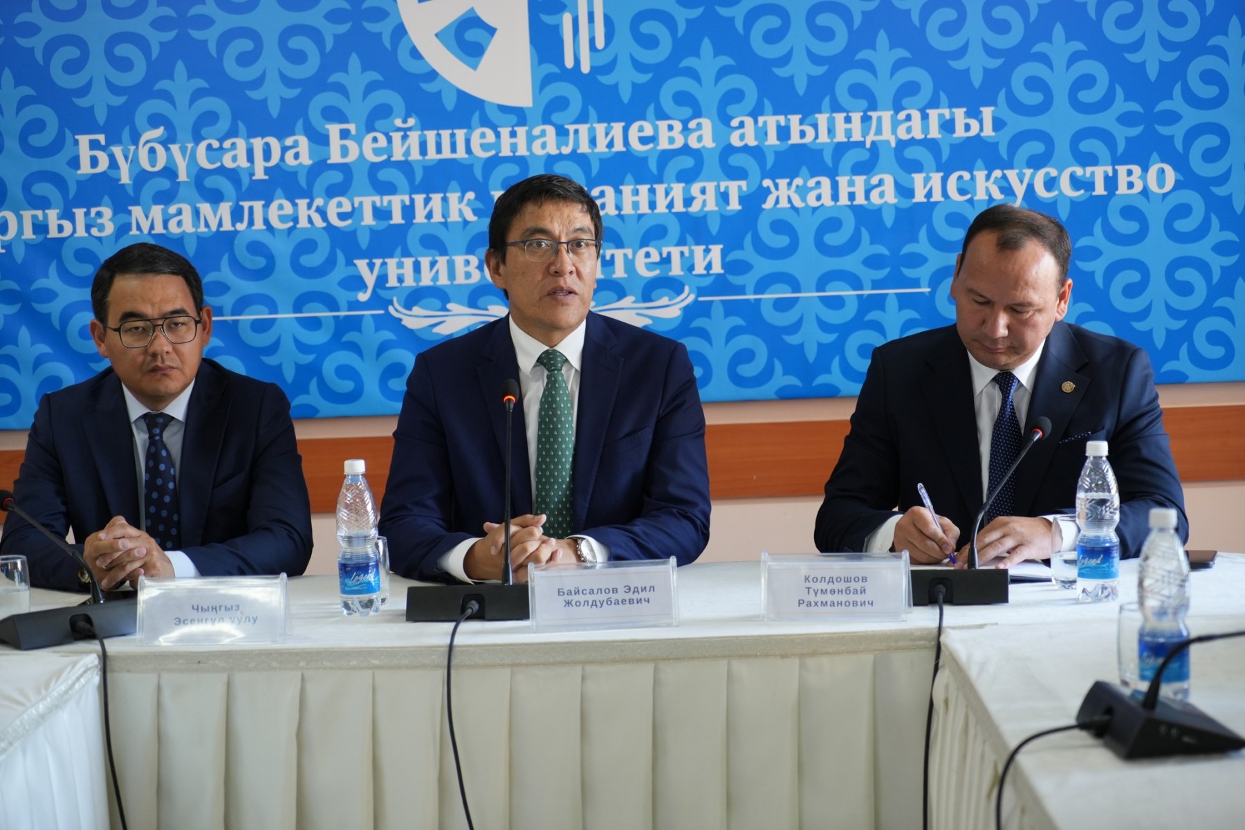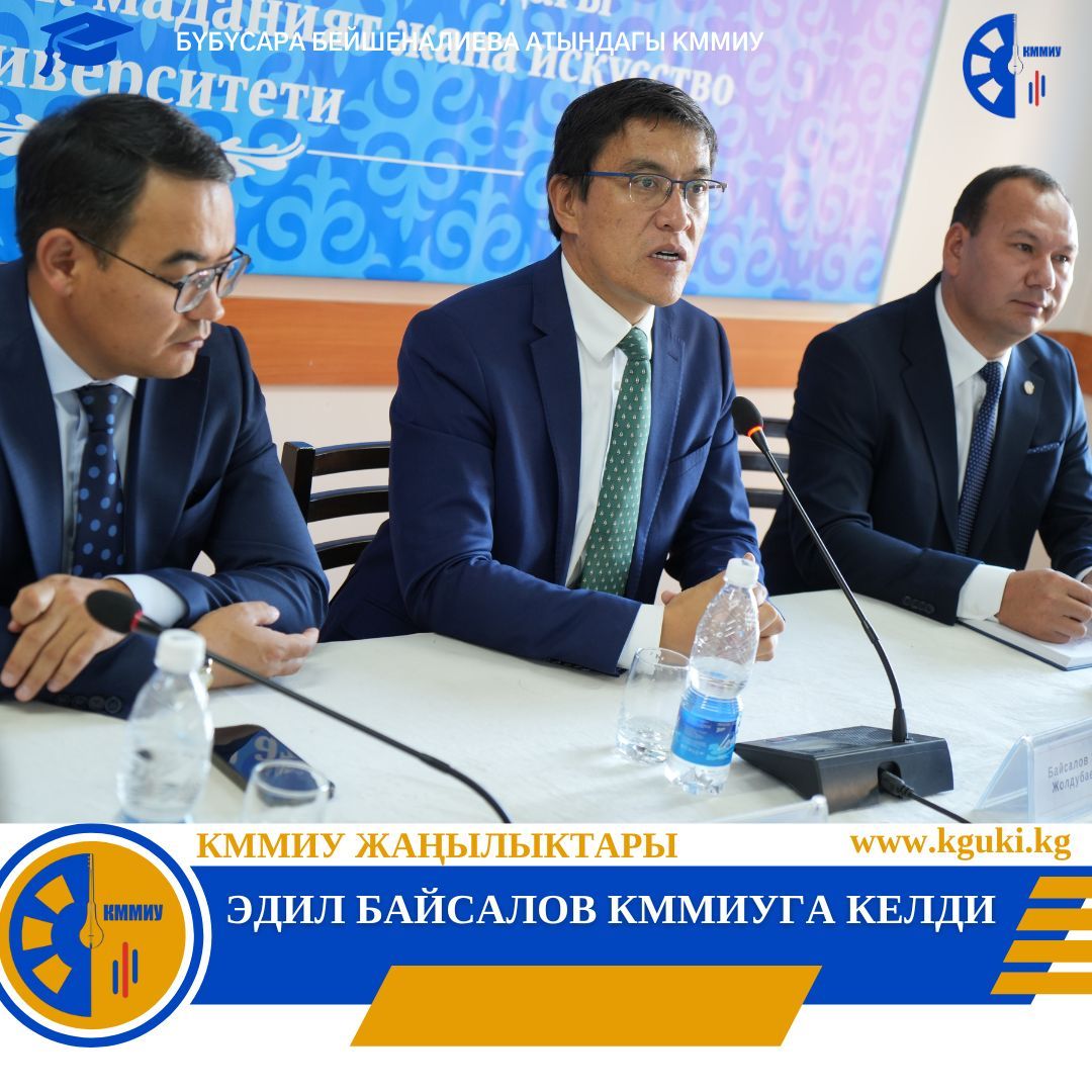 Бүгүн, 4-сентябрда Бүбүсара Бейшеналиева атындагы КММИУга Министрлер кабинетинин төрагасынын орун басары Эдил Байсалов келип, окуу жайдын жамааты менен жолугушту.