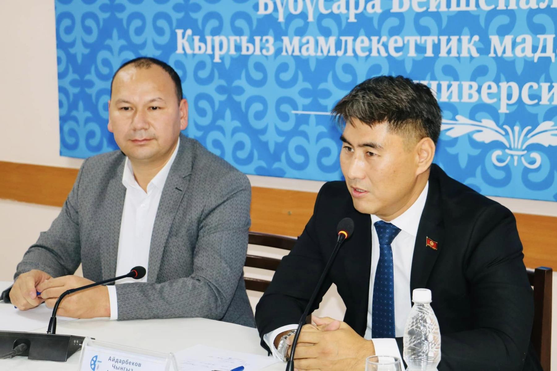 Жолугушуунун жүрүшүндө университеттин ректору Түмөнбай Колдошов эл өкүлүн окуу жайдын базасы менен тааныштырып чыкты.